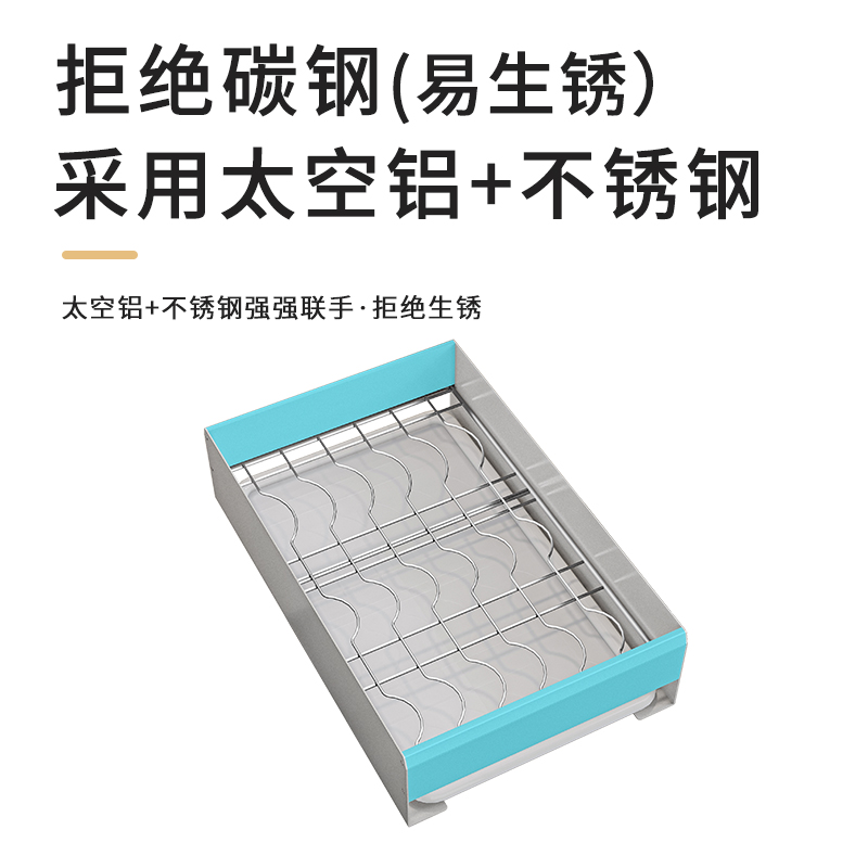 柜内抽屉免打孔免安装 碗碟拉篮超深柜置物架放锅架橱柜收纳分层架