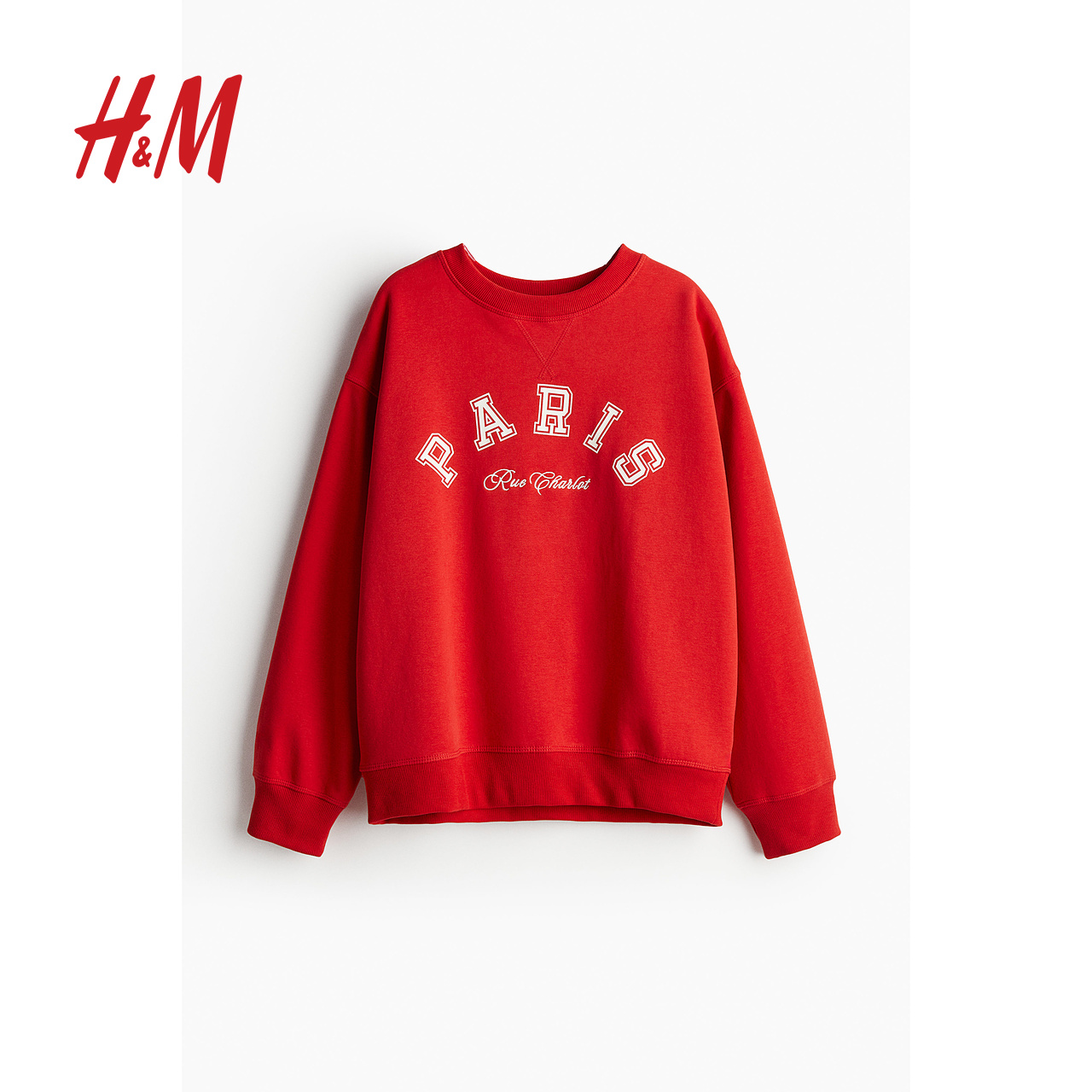 1011828 红色内搭保暖宽松圆领字母印花套衫 HM女装 卫衣秋季