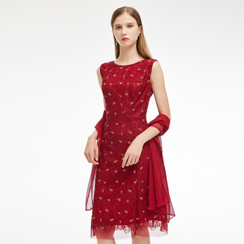 连衣裙配披肩时尚 红色蕾丝无袖 MRA249DRX0 马天奴秋冬新款 专柜正品