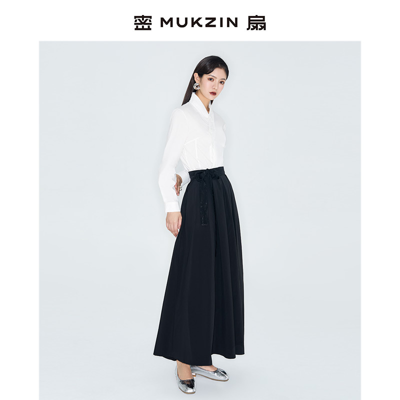 a字裙黑色半身裙秋新款 朗姿Basic衣橱复古法式 裙 免定金