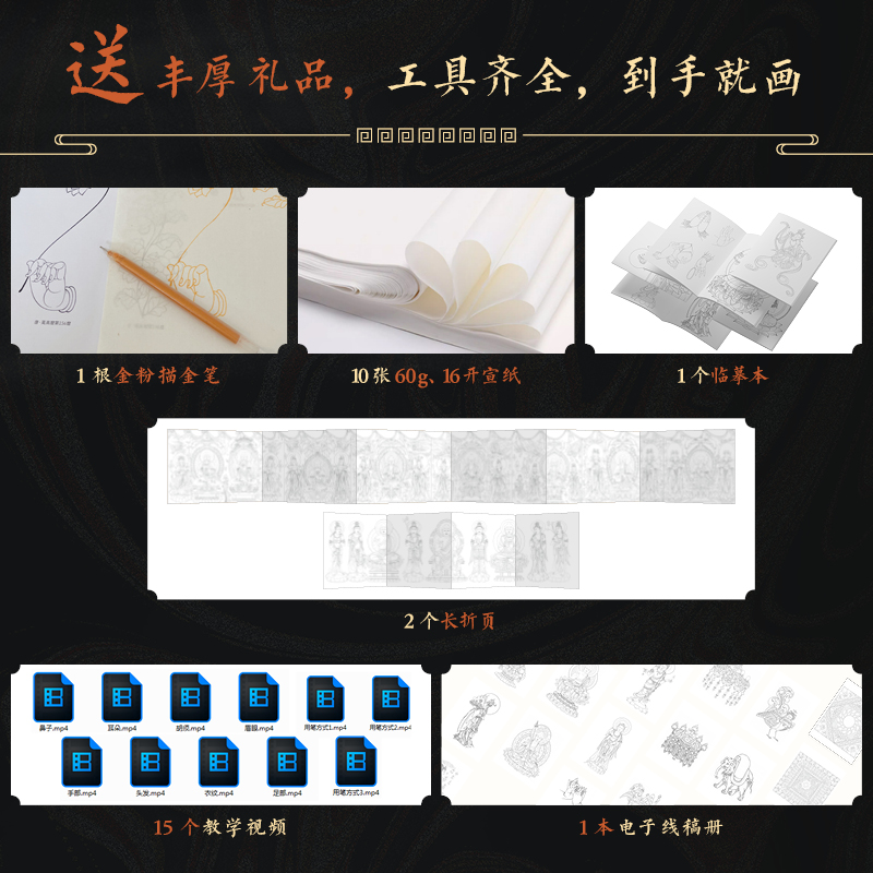一眼千年 敦煌纹样国风传统文化临摹线稿正版 敦煌壁画白描临摹本 成人静心解压画册画集 实体书 敦煌壁画线稿临摹本线描本 当当网