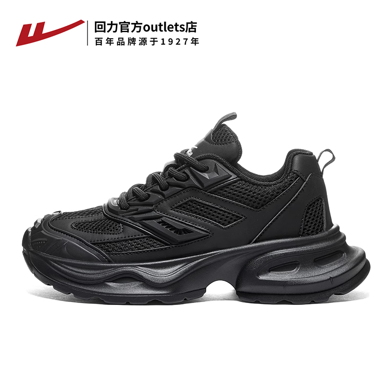2025新款 夏季 黑色网面透气休闲鞋 子女款 回力老爹鞋 厚底运动鞋 女鞋