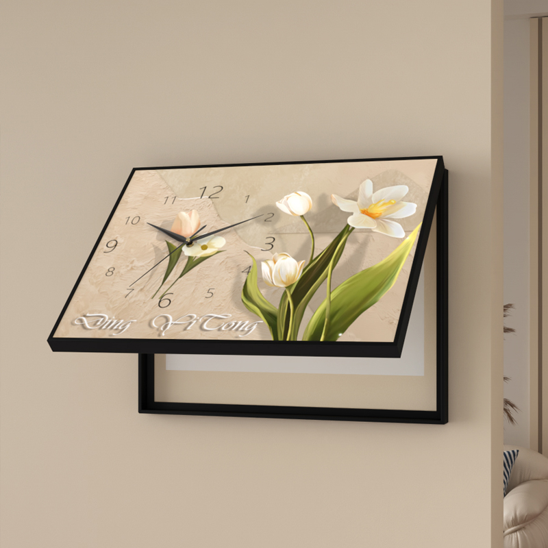 万年历电表箱装 饰画带钟表免打孔配电箱遮挡画现代轻奢挂画电子钟