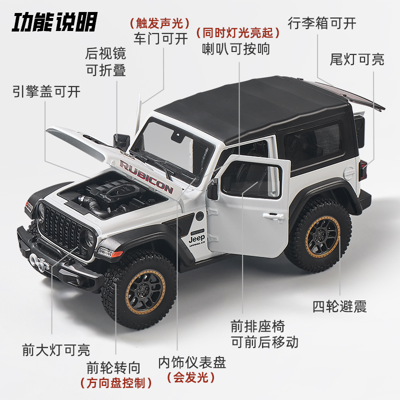 18仿真吉普牧马人罗宾汉越野车卢比肯JEEP合金汽车模型儿童玩具