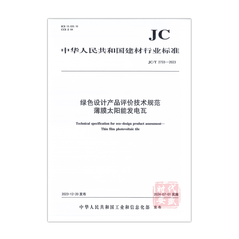 2733 2023 建材行业标准规范 绿色设计产品评价技术规范薄膜太阳能发电瓦 2023新标正版