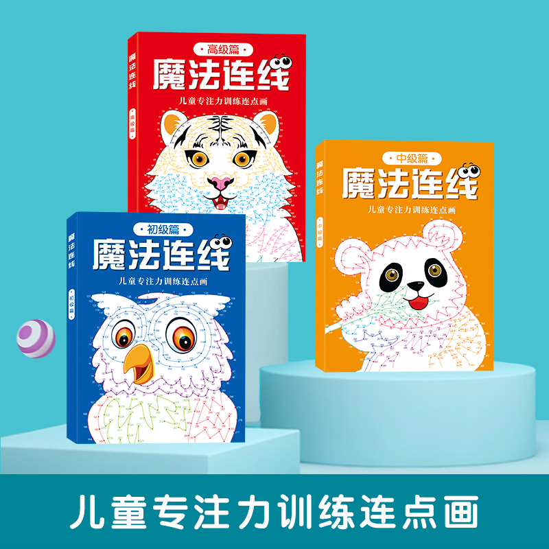 魔法连线游戏书 9岁儿童早教启蒙益智进阶游戏智力开发眼力脑力大挑战玩具书亲子游戏书 全3册 儿童专注力训练连点画