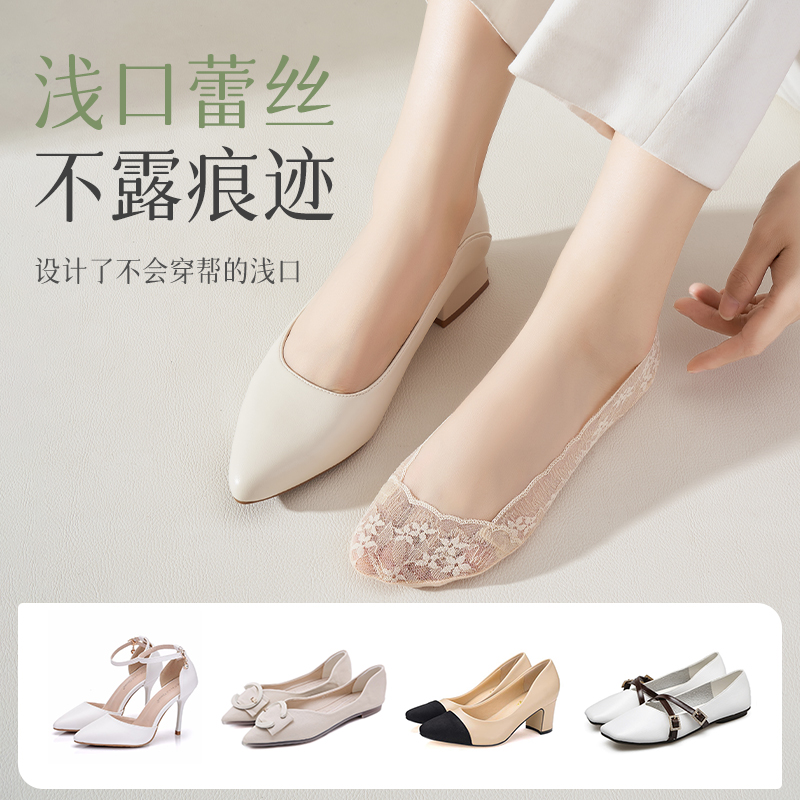 单鞋 棉质底高跟鞋 防滑脱不掉跟浅口隐形袜子 薄款 护跖骨船袜女夏季