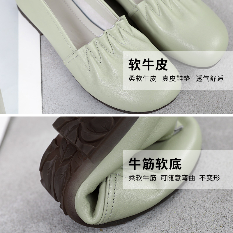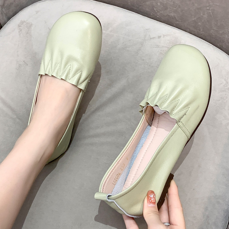 平底软皮单鞋 春41一43浅口豆豆鞋 仙女风瓢鞋 女鞋 真皮大码 2025新款