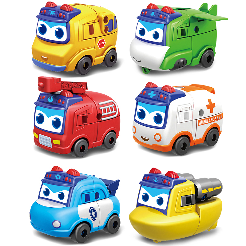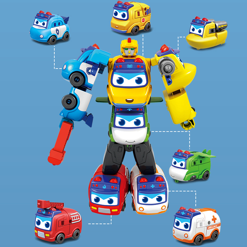 正版 百变校巴儿童玩具车歌德六合一变形机器人男孩小汽车合体套装