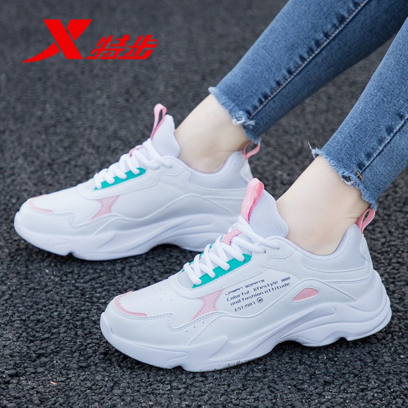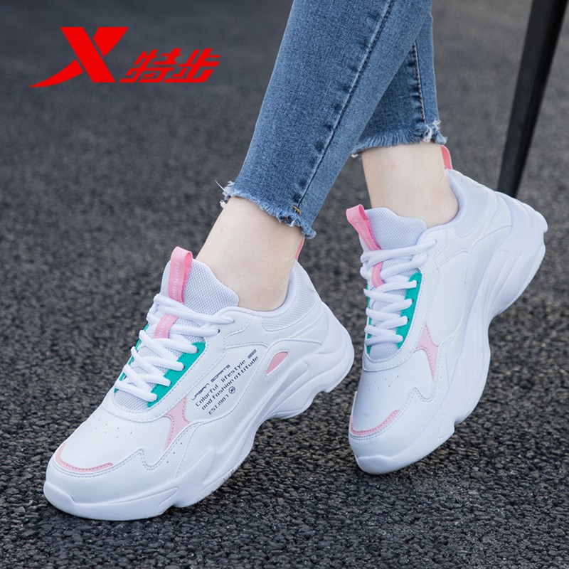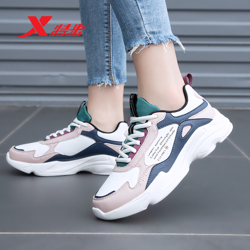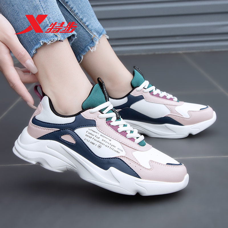 2025新款 女士跑步鞋 潮鞋 特步女鞋 子老爹鞋 运动鞋 皮面休闲鞋 女 秋季