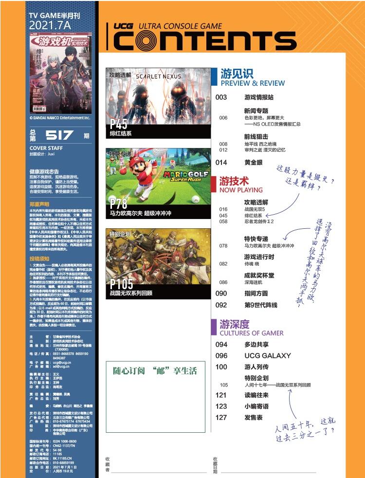 游戏机实用技术第517期 2021年7A 冲冲冲 现货 ps4游戏杂志攻略书 马力欧高尔夫 UCG 绯红结系 正版 战国无双5系列全回顾