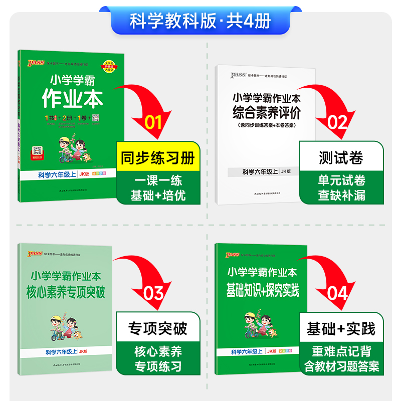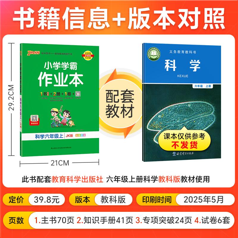 25秋 科学小学学霸作业本六年级课本同步练习册知识点提优训练上下册练习题科学试卷达标测试实验视频天天练PASS绿卡图书 教科版