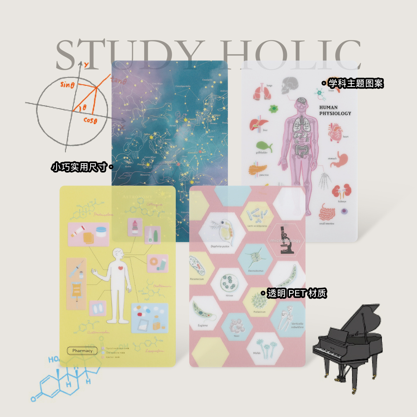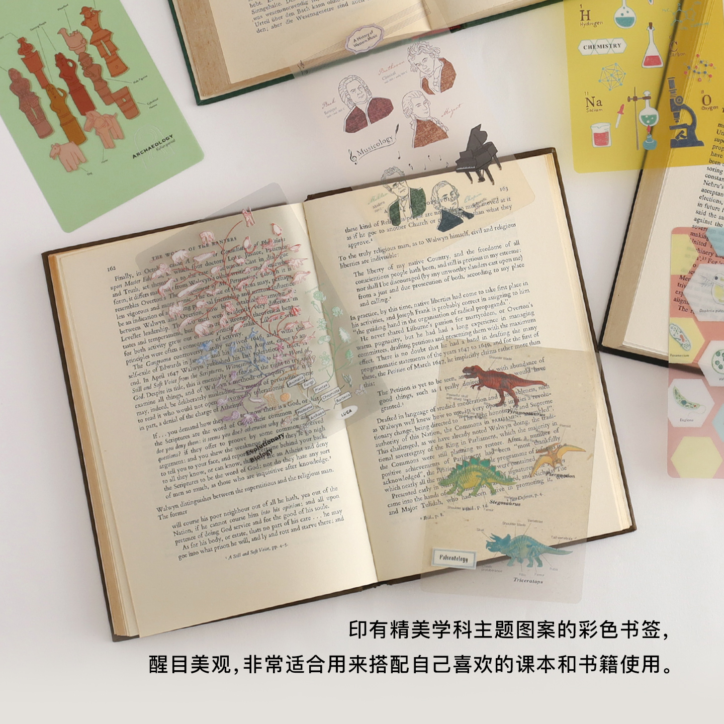 日本GreenFlash HOLLC趣味学科主题系列插画印花主题透明书签大号适配A6以上书本PET材质 STUDY