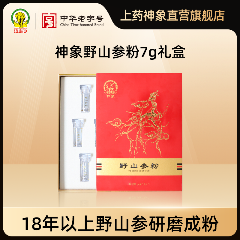 神象野山参粉1克X7支18年以上东北长白山脉野山参研磨成纯粉