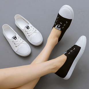 女2025年新款 春秋浅口小白鞋 夏季 一脚蹬休闲女士布鞋 子 薄款 帆布鞋