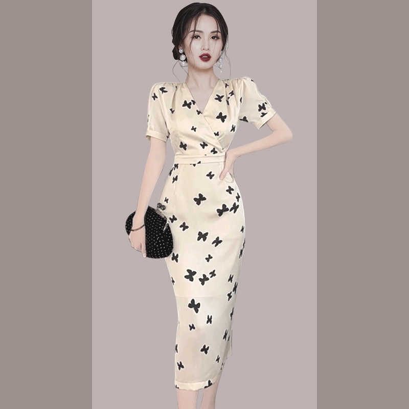 法式 新款 复古显瘦碎花长裙子 包臀连衣裙女2025夏季 御姐轻熟风修身