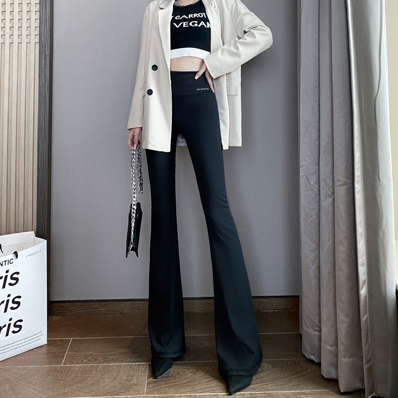 微喇长裤 弹力紧身高腰显瘦垂感西装 子 女加绒外穿打底裤 黑色喇叭裤
