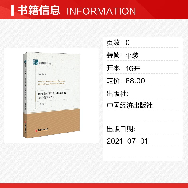 管理学精品系列 英文版 中经管理文库 杨婧雯著 社 欧洲上市和非上市公司 中国经济出版 盈余管理研究