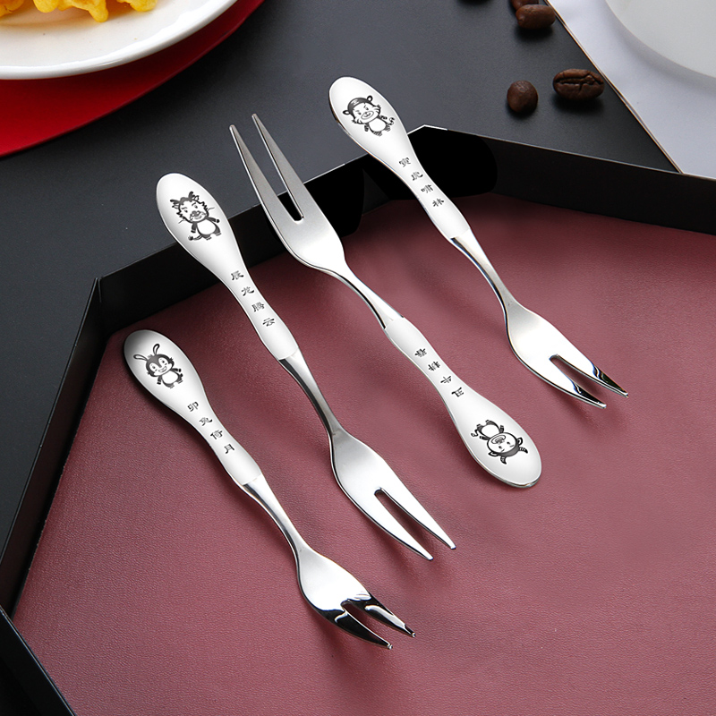304不锈钢水果叉家用叉子儿童甜品叉小可爱蛋糕叉创意沙拉水果签
