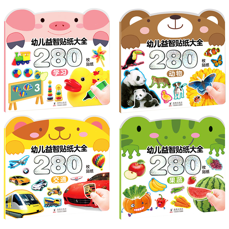 果蔬2 交通 6岁宝宝全脑思维游戏贴贴画亲子游戏贴纸书人物早教动脑益智力开发贴贴画绘本 全4册幼儿益智贴纸大全动物 学习