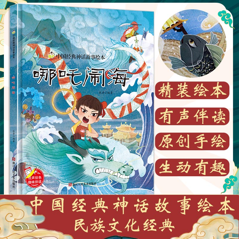 书籍大班中班小班宝宝3 神话故事系列幼儿园正版 6岁亲子共读绘本儿童早教启蒙认知睡前故事硬壳硬皮硬面绘本 中国经典 哪吒闹海
