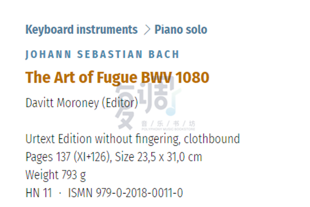 1080 HN11 J.S·巴赫 赋格 原版 BWV 亨乐 进口 艺术