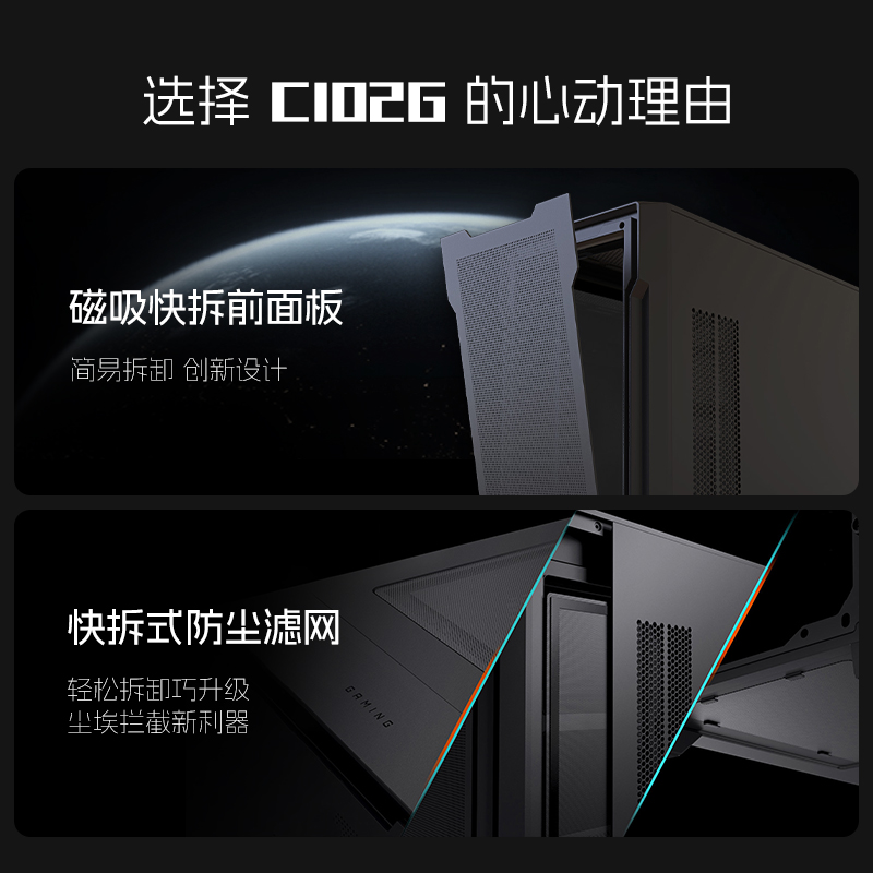 技嘉C102 301幽灵360水冷侧透RGB中塔atx海景房电脑机箱 201
