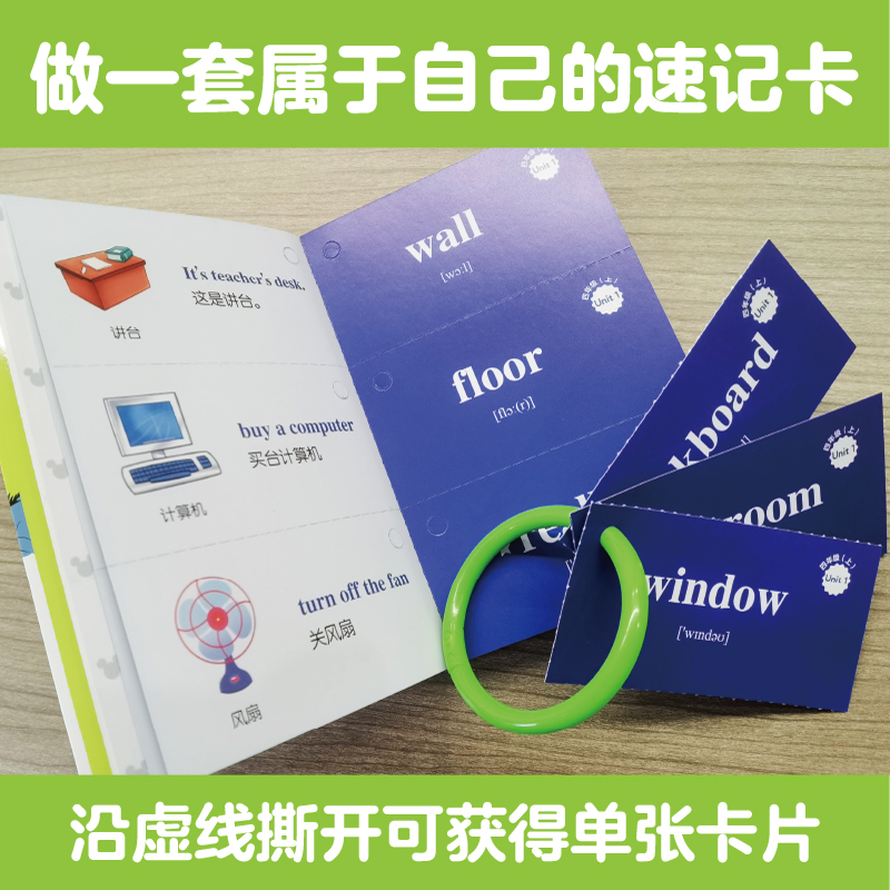 4年级 赠英文音频四年级单词背诵书卡片 四年级人教版 联想记忆 华东理工 PEP 迪士尼全彩图解小学英语单词速记卡
