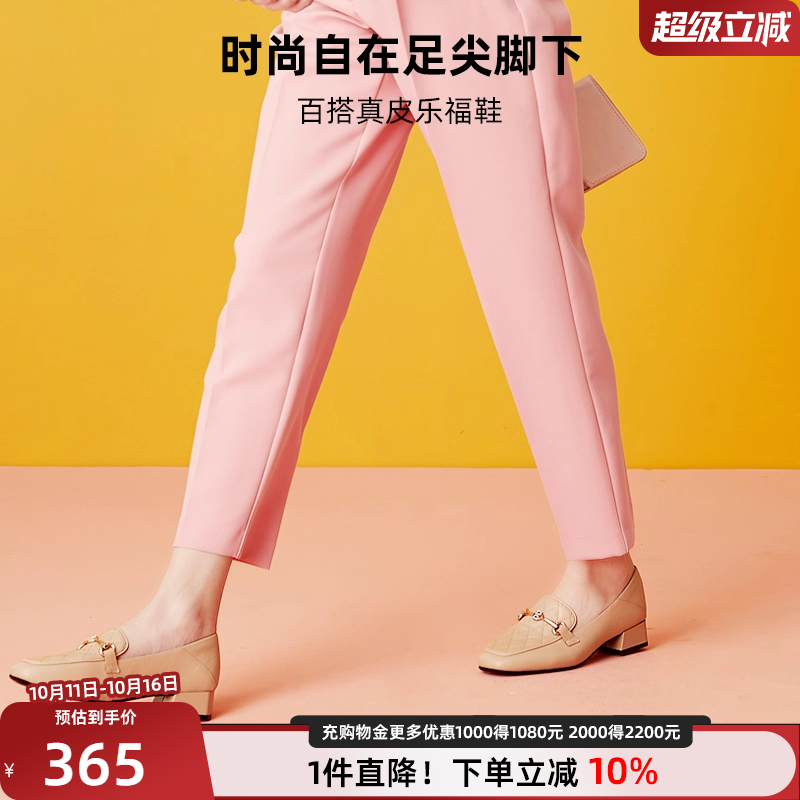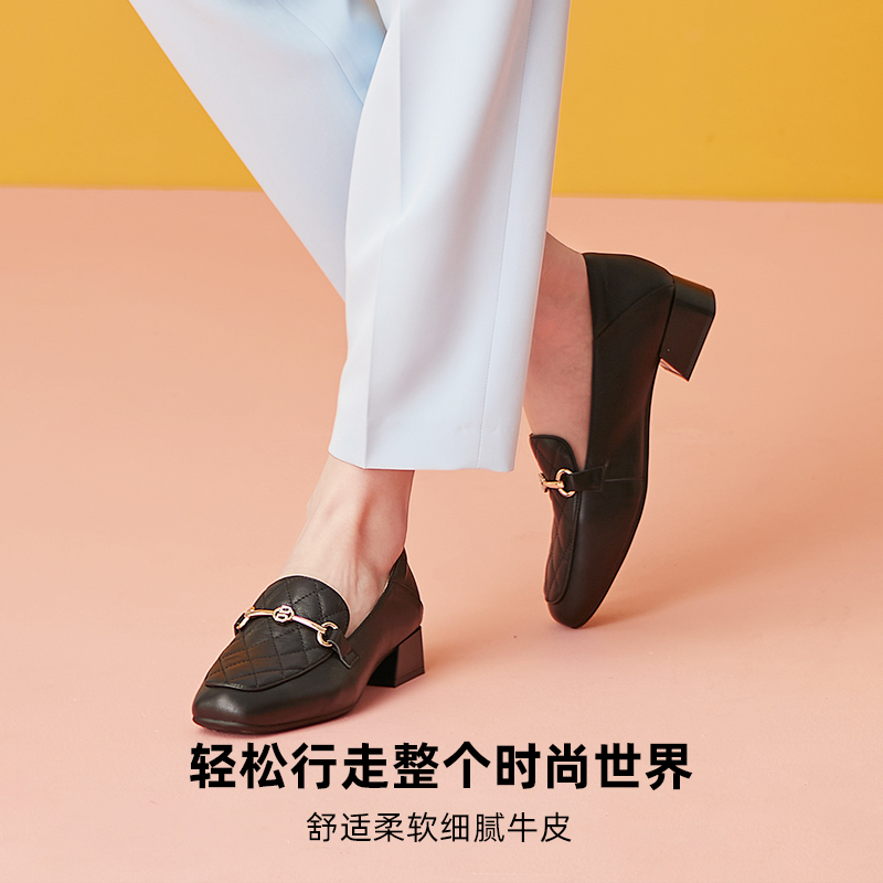 英伦皮鞋 马衔扣真皮乐福鞋 方头中跟深口单鞋 新款 女粗跟2025春秋季