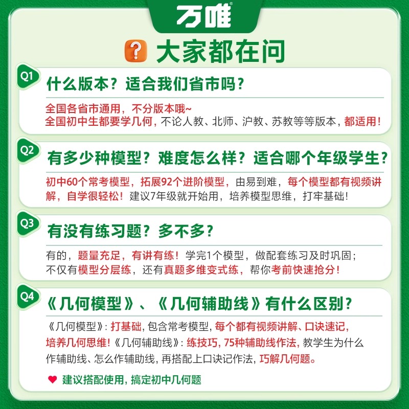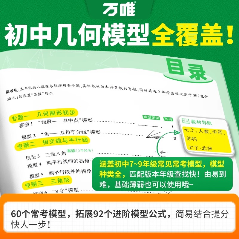 2026万唯中考初中几何模型辅助线初一初二数学必刷题七上八上全国版 题型压轴题高频易错题专项训练教辅资料书万维官方旗舰店 公式