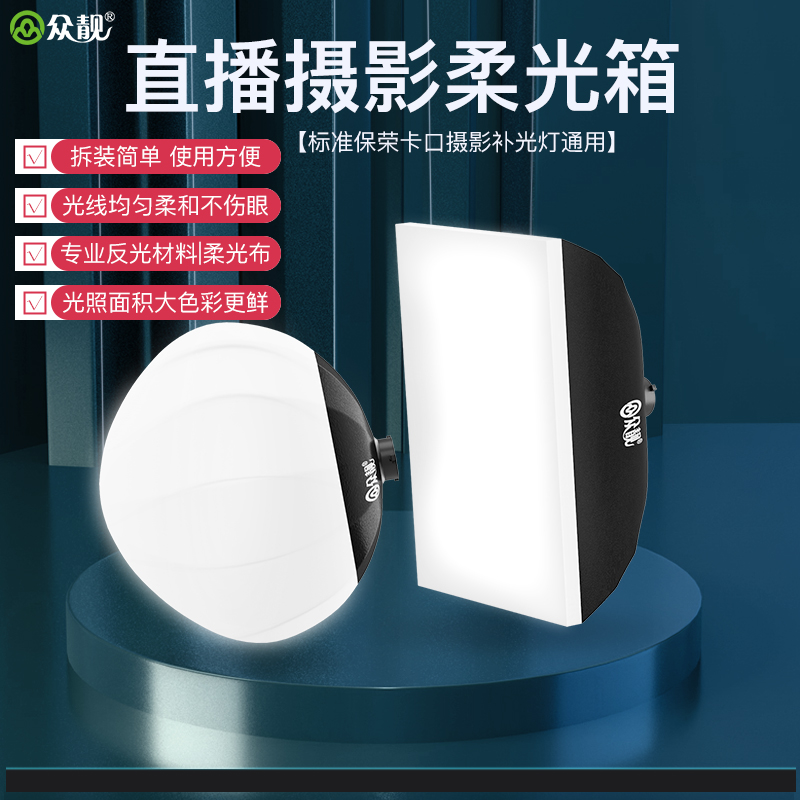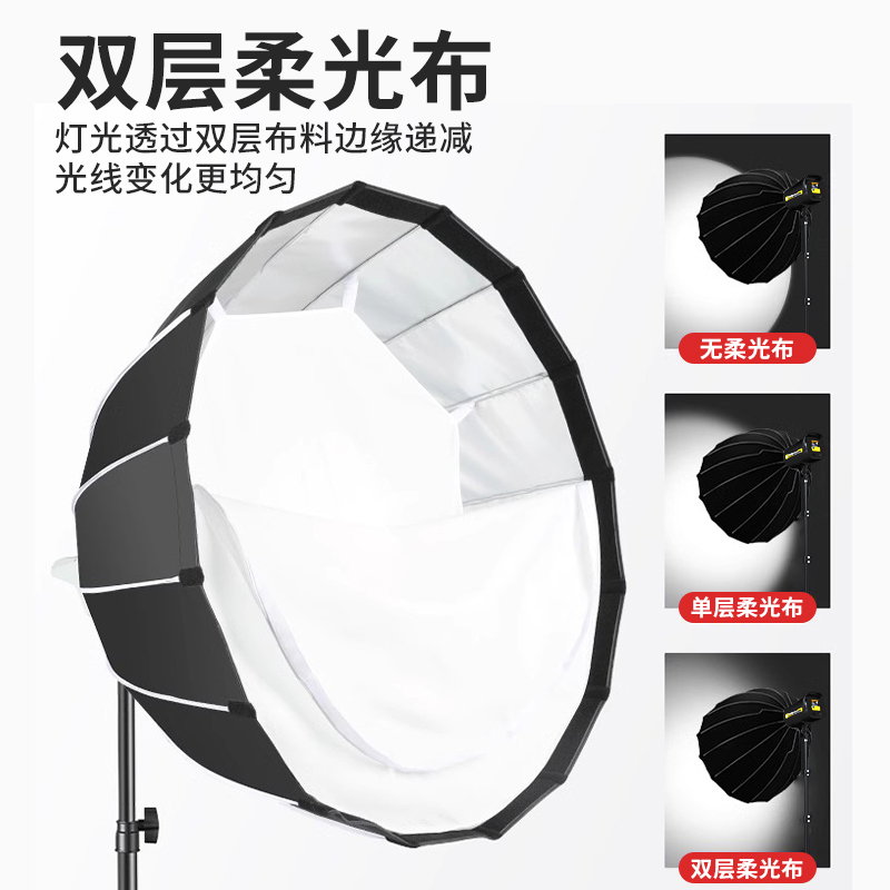 众靓深抛柔光箱格栅柔光罩柔光球束光筒铝罩球形方形直播灯罩补光灯配件保荣口快装 摄影拍照灯罩反光板