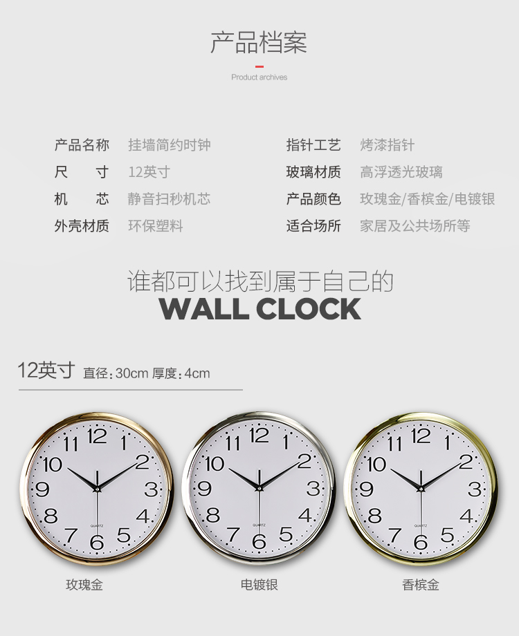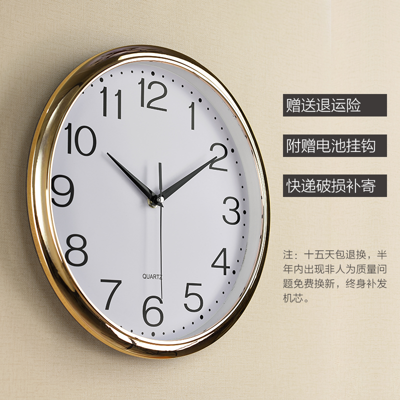 钟表挂钟客厅家用挂墙时钟免打孔圆形简约静音壁挂石英钟卧室时尚
