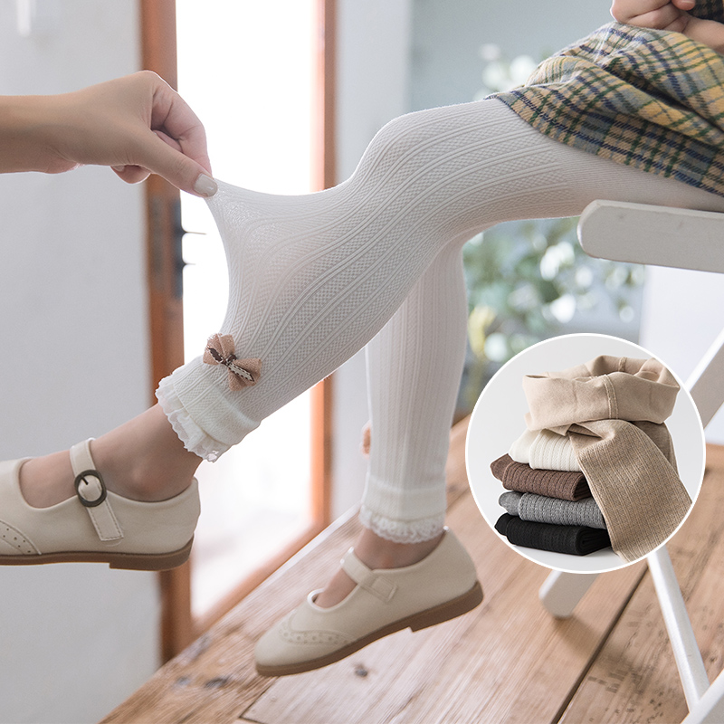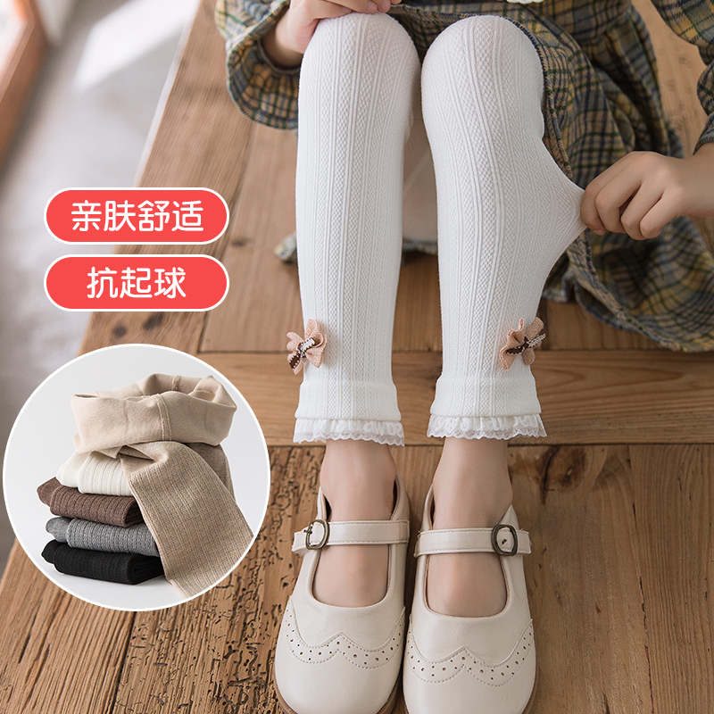 女宝宝薄款 修身 裤 女童春秋季 童装 花边蕾丝打底裤 子儿童九分裤 韩版