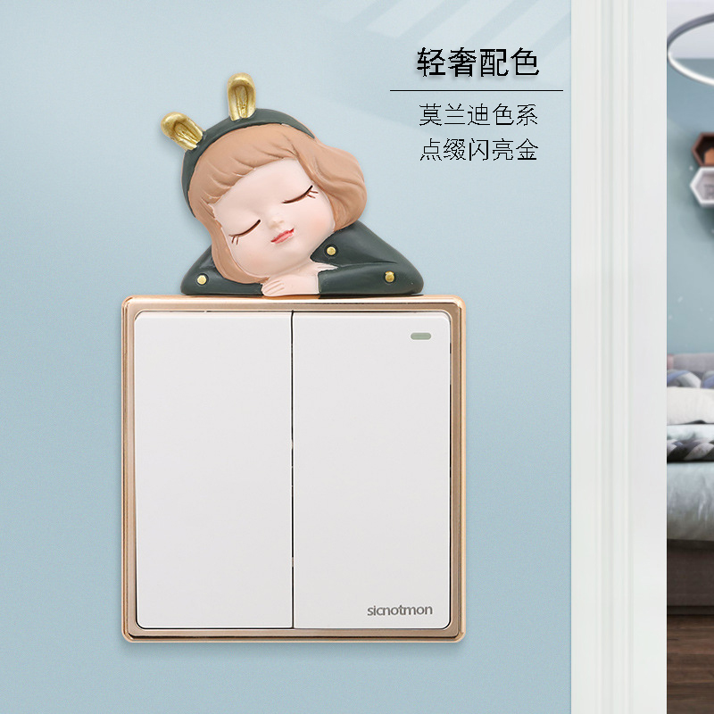 开关装 饰墙贴插座遮挡遮丑创意轻奢开关贴小萝莉卡通可爱3d立体