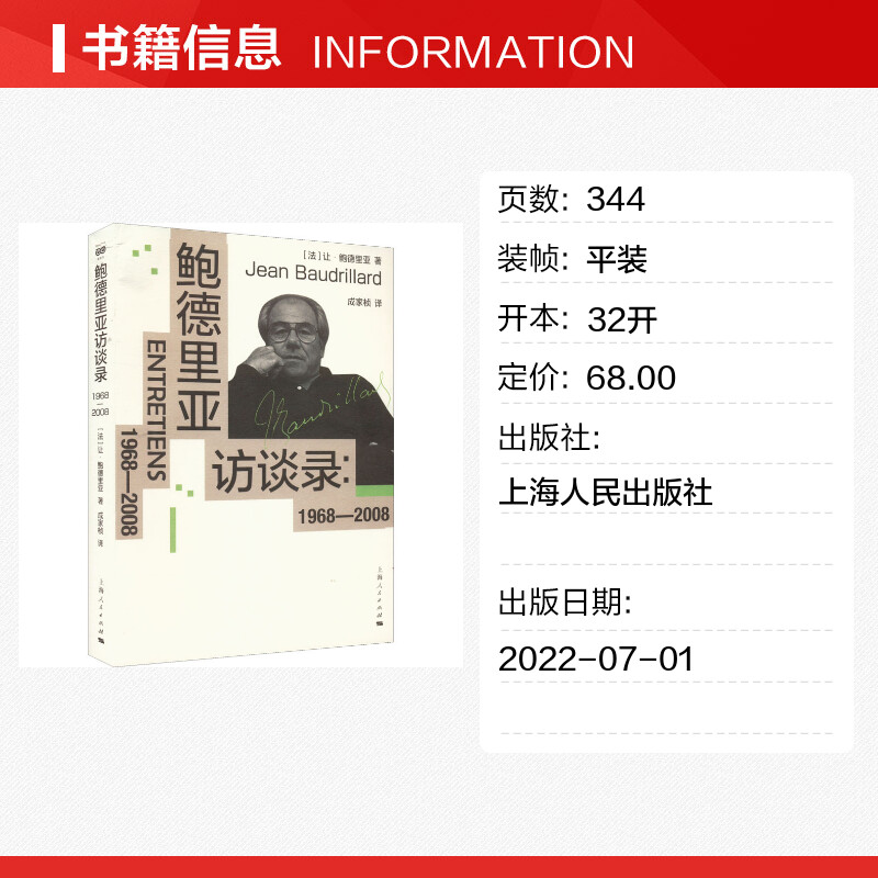译 1968 著 鲍德里亚访谈录 外国哲学社科 上海人民出版 法 图书籍 2008 社 让·鲍德里亚 新华书店正版 成家桢