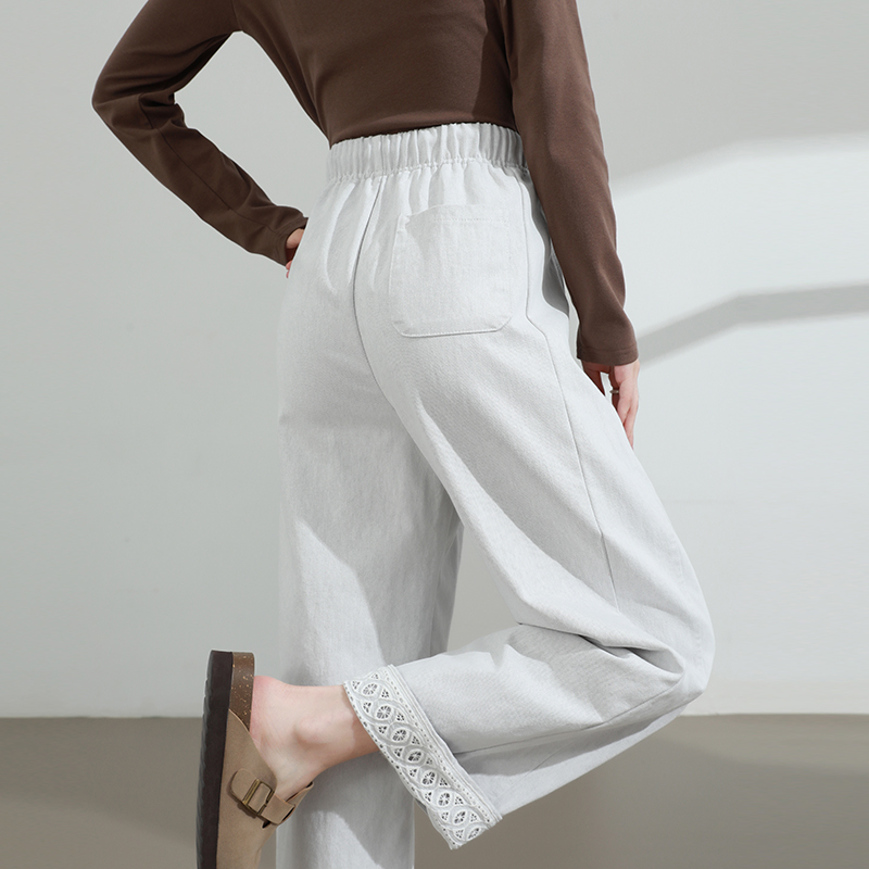 高腰宽松显瘦小个子直筒休闲裤 九分卷边镂空花边哈伦裤 女春秋新款