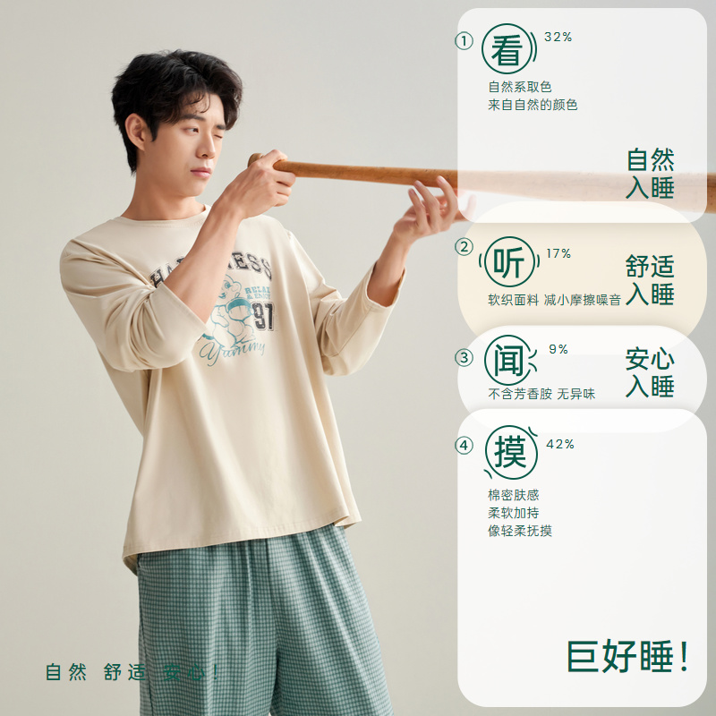 春秋季 情侣睡衣女款 纯棉男士 宽松大码 安之伴 家居服套装 巨柔软