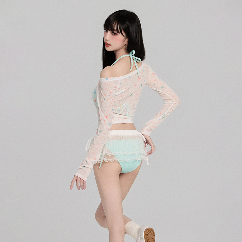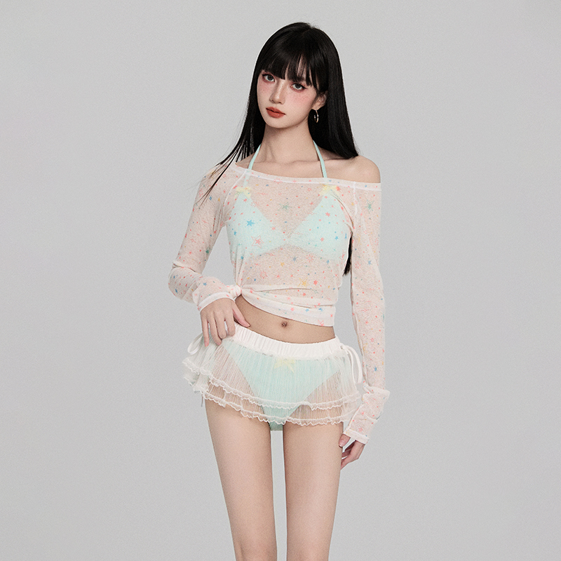 泳装 绝美泳衣女士2025新款 分体高级感纯欲性感海边度假四件套裙式