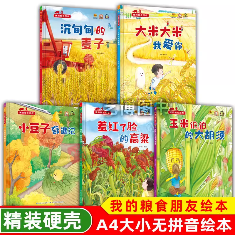 大米大米我爱你 高粱粒粒皆辛苦玉米伯伯 幼儿园精装 绘本儿童从一粒米开始羞红了脸 大胡须图画绘本书 A4大小关于食物粮食 硬壳