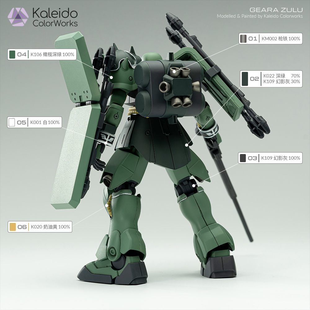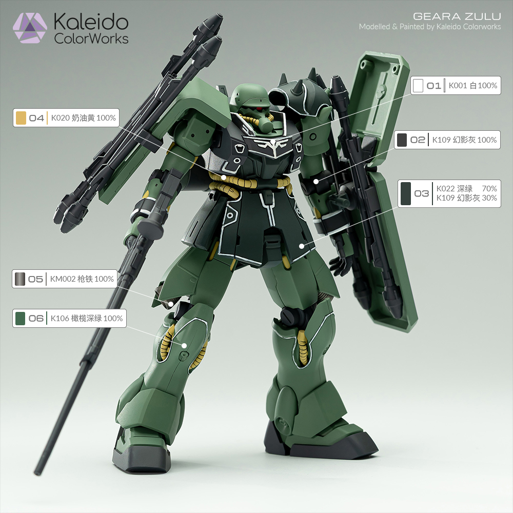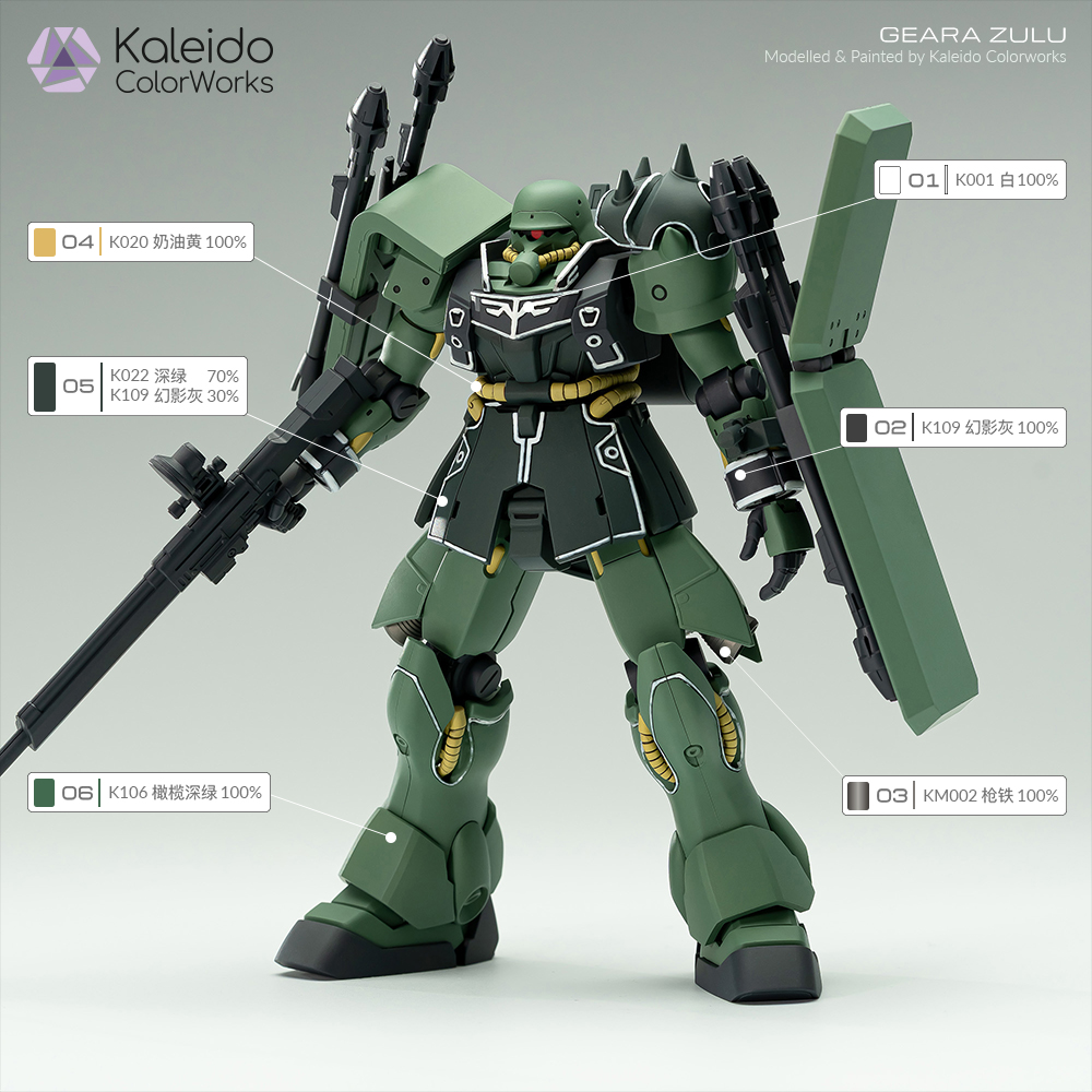 Kaleido伽利略水性漆高达模型漆GearaZulu基拉祖鲁原型配色方案