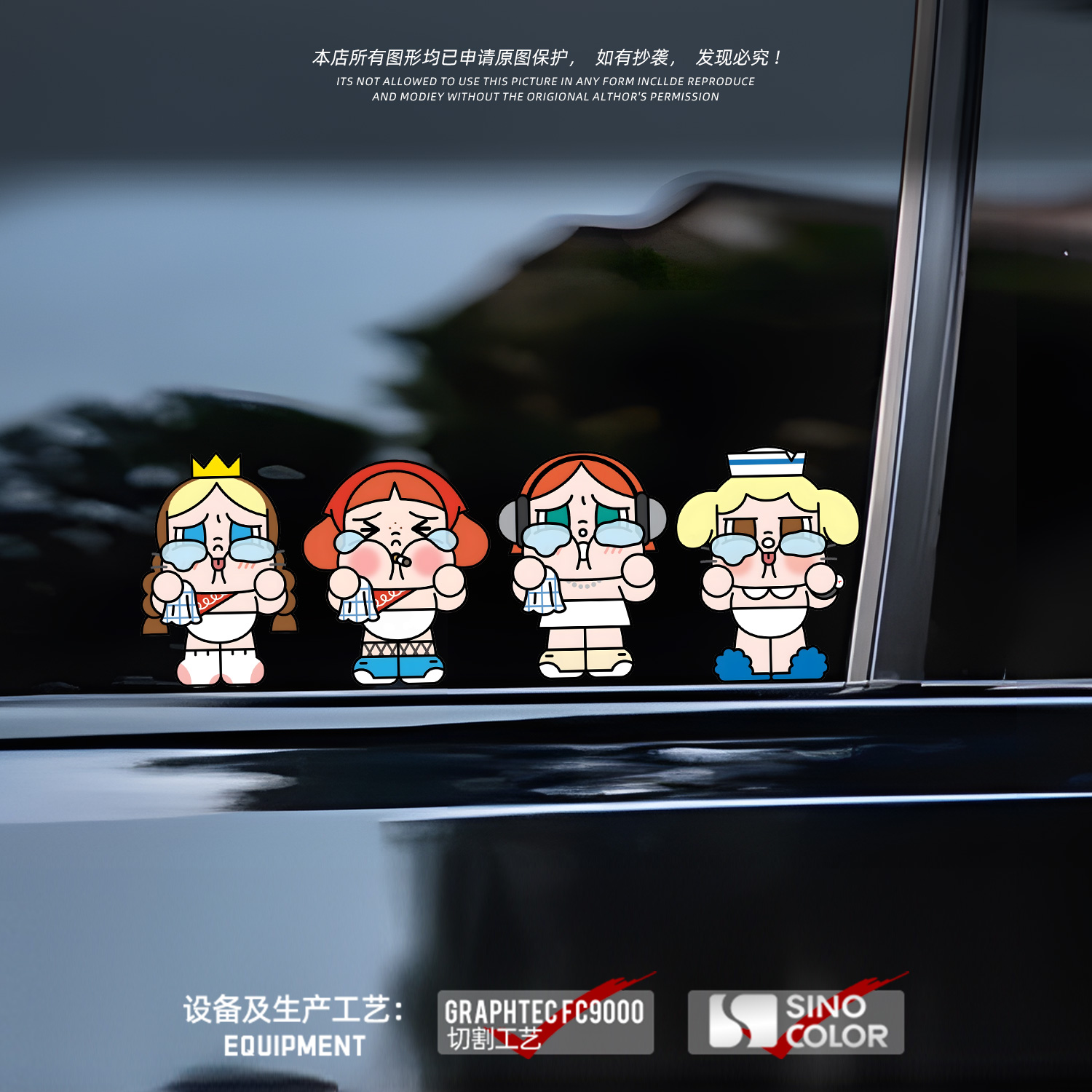 适用于可爱哭娃汽车车窗玻璃贴纸电动车贴画装 饰防水贴行李箱贴纸