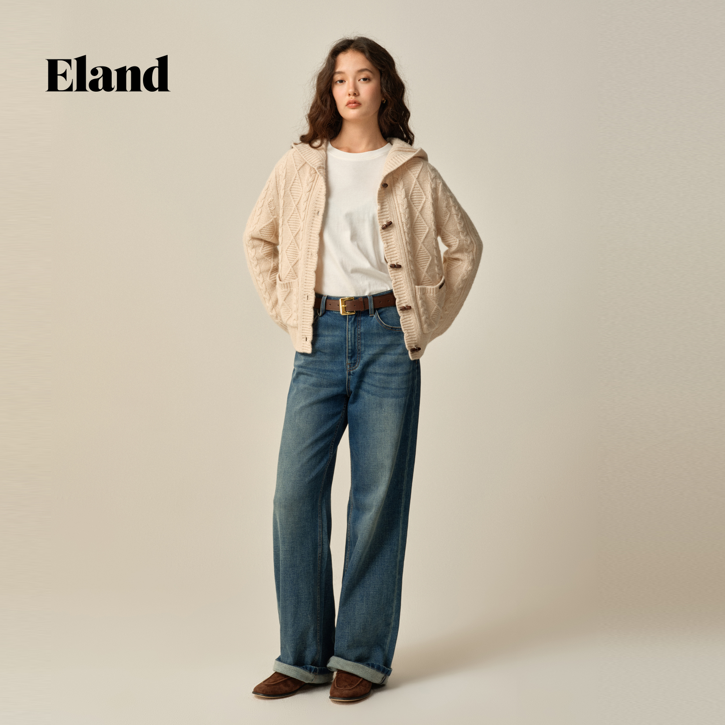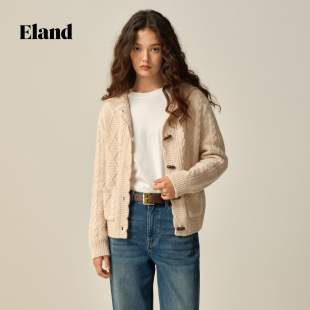 2025秋季 女复古气质单排扣连帽开衫 Eland衣恋毛针织衫 新 预售