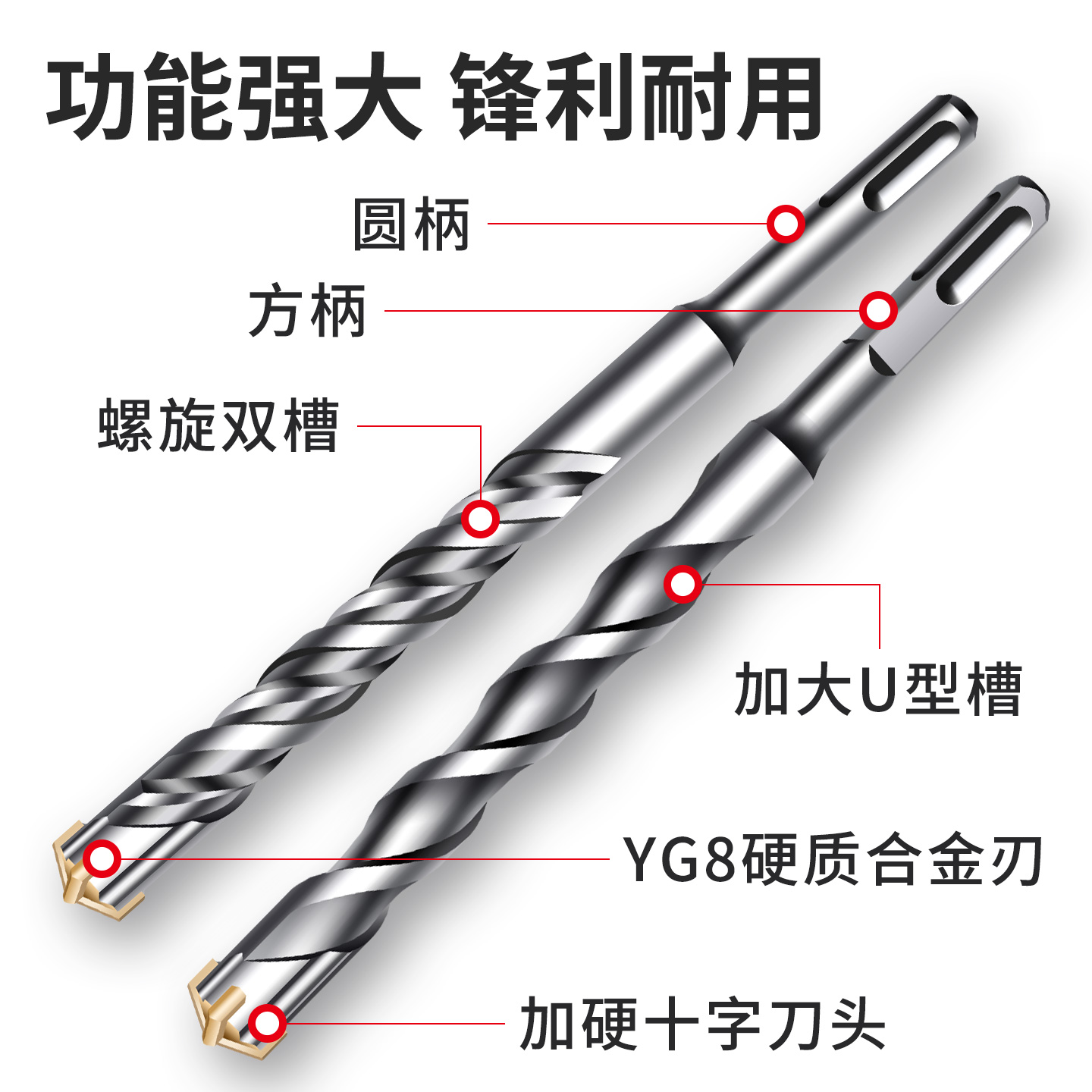 冲击钻钻头圆方柄混凝土打孔专用电锤凿头子穿墙过墙合金电镐钻头