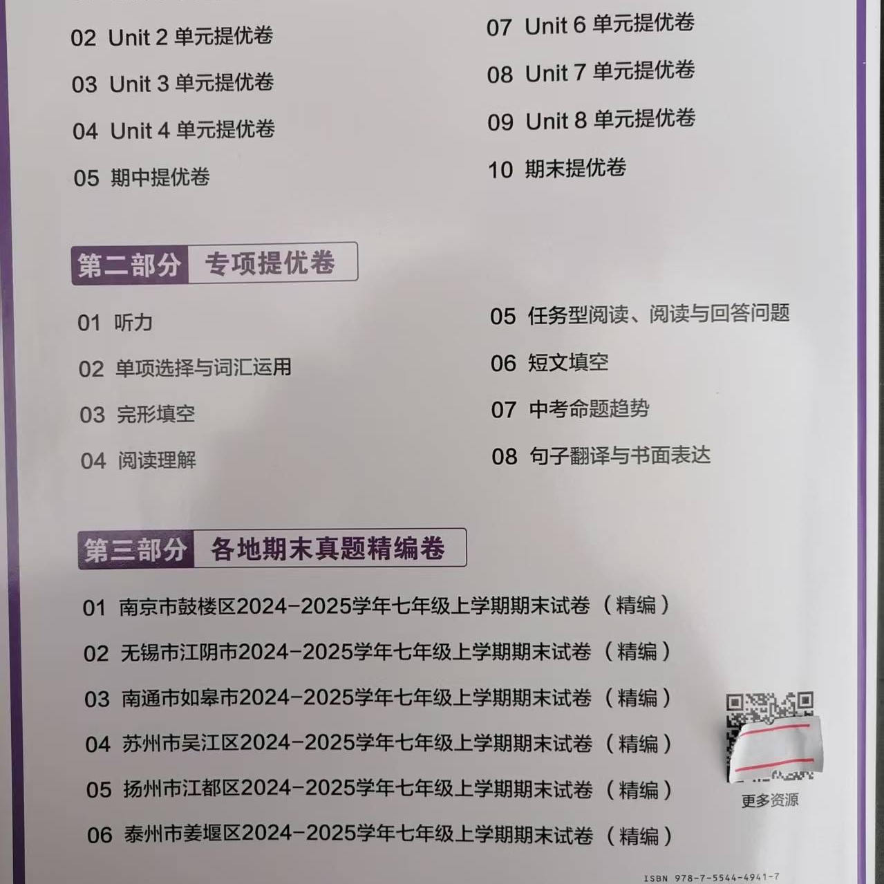单元 包邮 江苏版 巩固 初一7上练习题 新版 真题汇编 2025秋季 新教材适用 七年级上册学霸提优大试卷英语 专题突破 含参考答案
