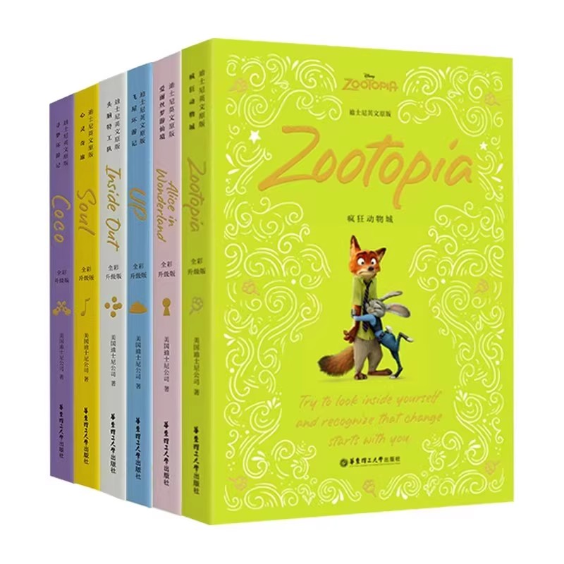 赠人物卡疯狂动物城头脑特工队心灵奇旅爱丽丝梦游仙境寻梦环游记飞屋迪士尼彩虹书 附音频 迪士尼英文原版 全彩升级6本套装