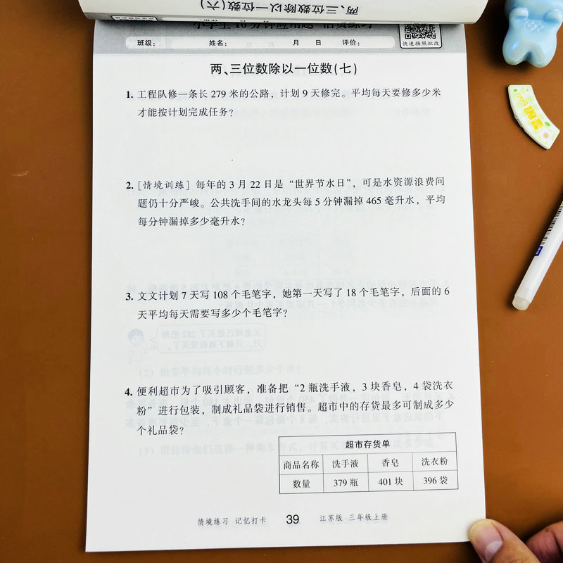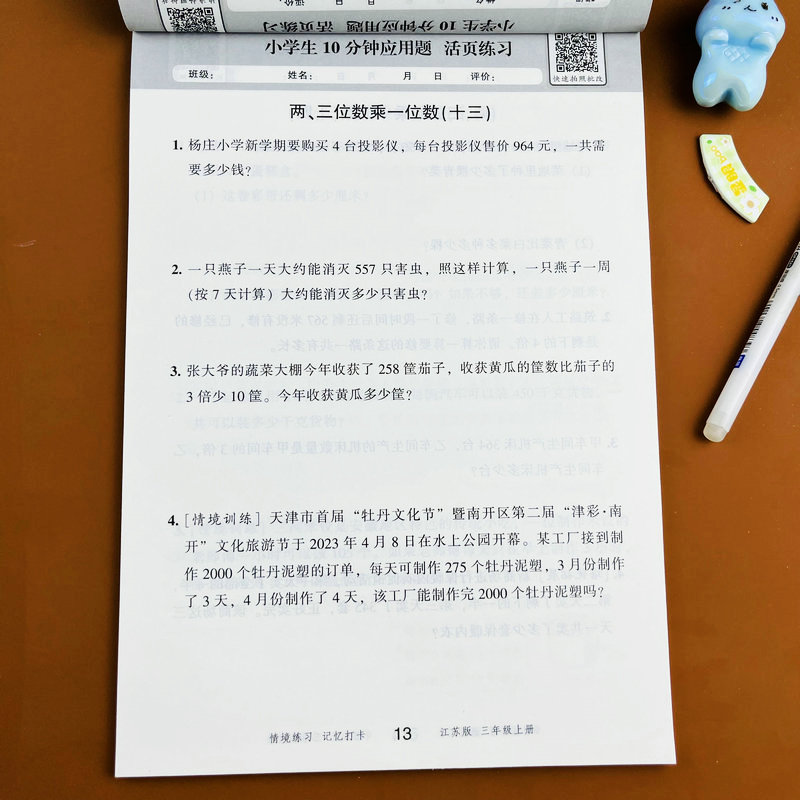 三位数乘一位数除以一位数分数 小学数学课本同步专项训练活页练习册随堂帮每天10分钟两 苏教版 三年级上册应用题卡天天练江苏版