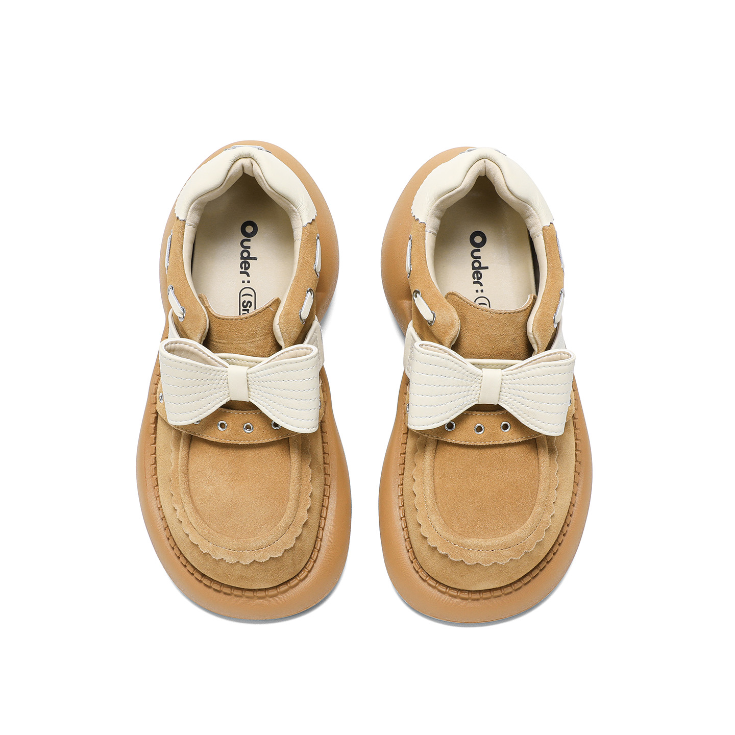 厚底增高大头鞋 Ouder 夏新款 女复古英伦风浅口蝴蝶结休闲鞋 乐福鞋