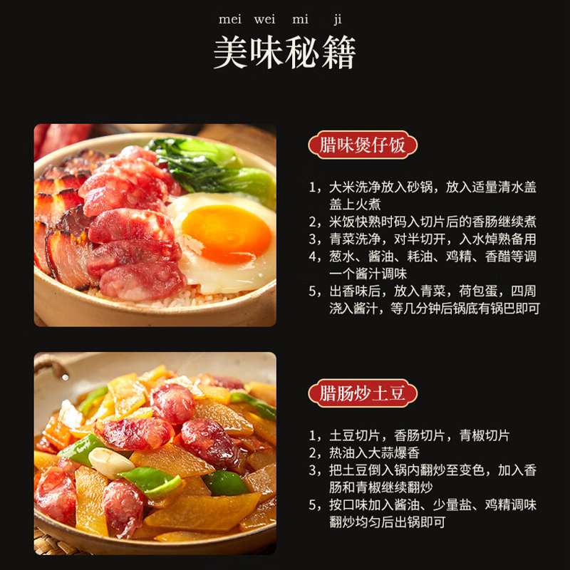 广味腊肠咸甜味香肠煲仔饭腊味 广式 云巅土正宗广式 腊肠优质散装