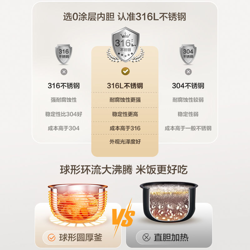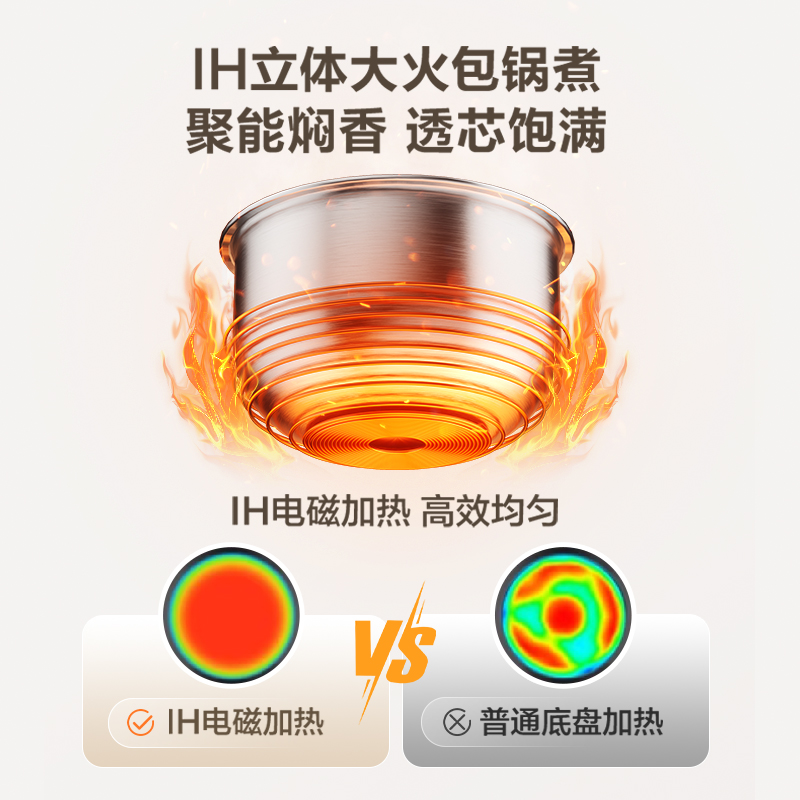 苏泊尔电饭煲家用IH大火力0涂层不锈钢内胆2L容量智能预约煮饭锅