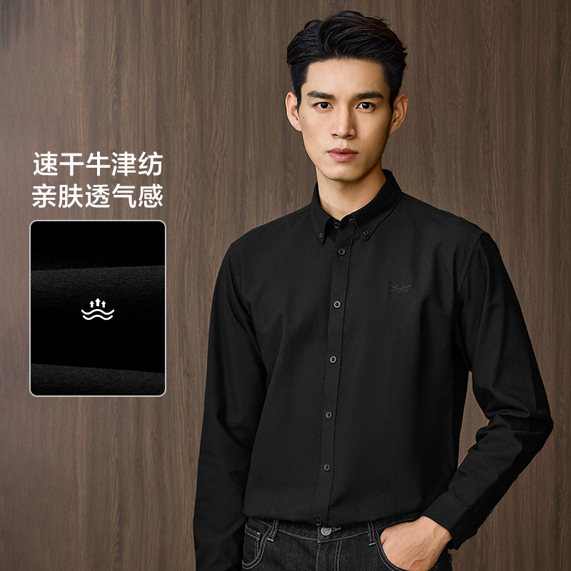 休闲黑衬衫 海澜之家轻商务长袖 HLA 25秋新上衣 速干牛津纺